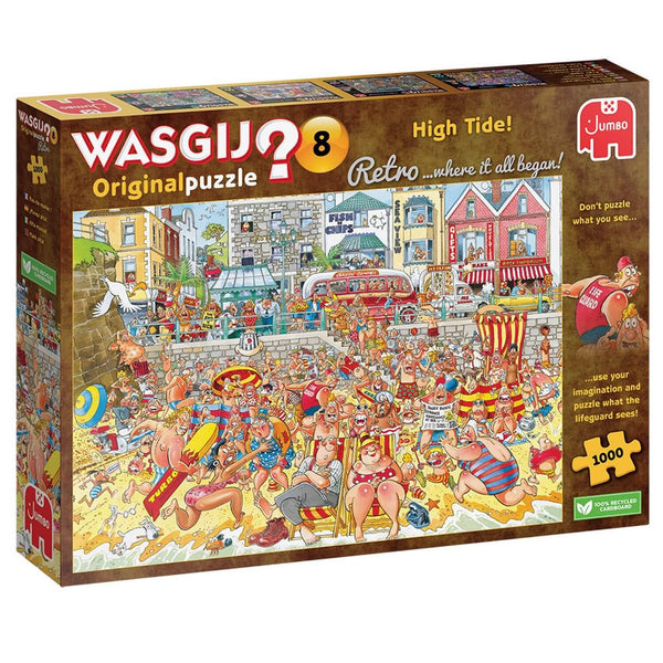 Découvrez l'atmosphère sereine d'une journée à la plage avec le puzzle Wasgij Retro Original 8 High Tide 1000 pièces. Illustré à l'origine par Graham Thompson en 2001. Imaginez-vous entouré d'air...