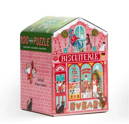 Stroll through a charming Christmas Market with 100 Piece Jigsaw Puzzles. These four seasonal puzzles feature charming, detailed artwork from Uta Krogmann. Find holiday sweet treats at the Bakery, stories for all at the Bookstore, whimsical treasures at the Toy Store, and everything else at the General Store! This assortment of 8 puzzles arrives in a self-contained, holiday display box, including 4 styles with 2 of each style.