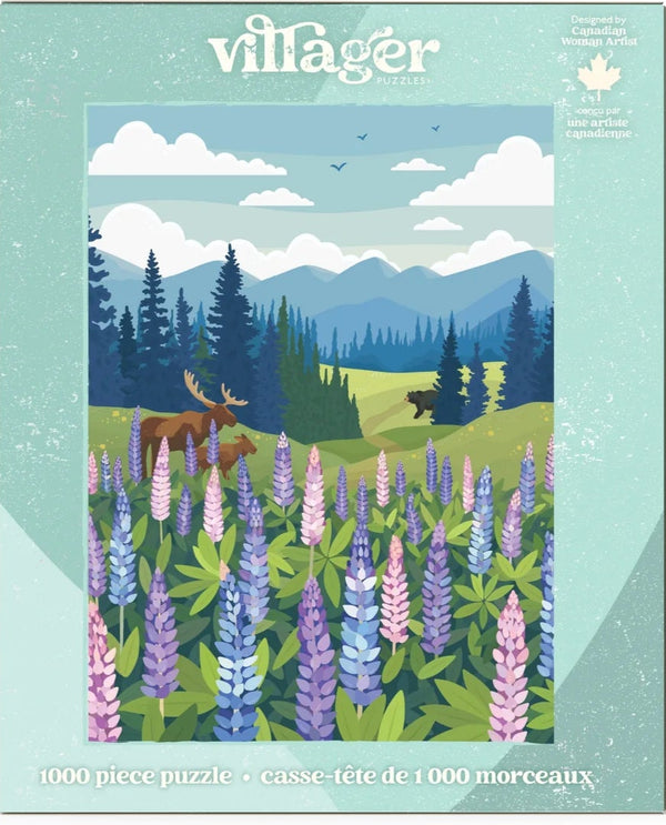 Step into a wild and whimsical meadow with this stunning puzzle, featuring rolling hills blanketed in blue and purple lupines. Designed by Newfoundland artist Diana Pinnell, this vibrant scene is a love letter to the untamed beauty of nature—complete with curious moose, a wandering bear, and trees swaying in the breeze. Perfect for outdoor lovers, this puzzle brings the magic of blooming fields and forest wildlife into your home, one peaceful piece at a time.