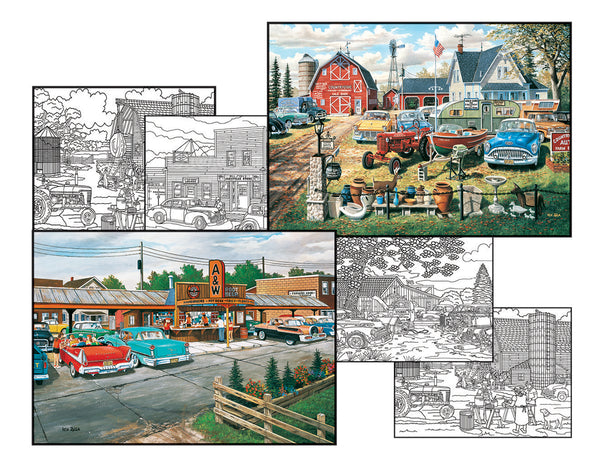 L'art de Sunsout. 2 puzzles de puzzle + 4 pages à colorier adultes. Déjeuner (500 pièces) et une récolte exceptionnelle (550 pièces). Les crayons de coloriage / stylos ne sont...