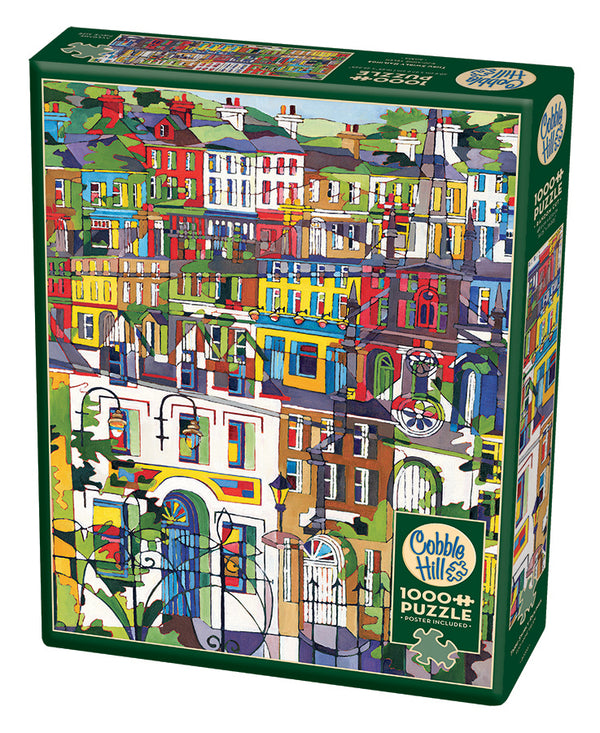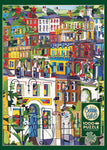 Thru Swirly Raillings utilise harmonieusement une palette de couleurs vives donnant le dynamisme à cette peinture de vie de rue architecturale en 1000 pièces.