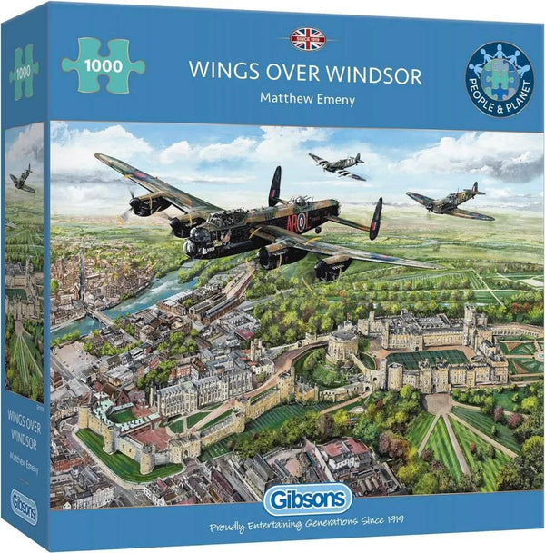 Wings Over Windsor propose des avions du «Royal Air Force Battle of Britain Memorial Memorial Flight» (BBMF) sur le château de Windsor, en Angleterre. Lancaster PA474 (AR-L) mène le Flypast et est l'un des deux bombardiers Lancaster en état de navigation restants de la Seconde Guerre mondiale. Les Lancaster accompagnent les Spitfires P7350 (KL-B) MK LLA et BB910 (SH-F) MK VB. Les trois avions sont peints dans les schémas de la Seconde Guerre mondiale choisis par le BBMF et utilisés au moment de la création de la scène.