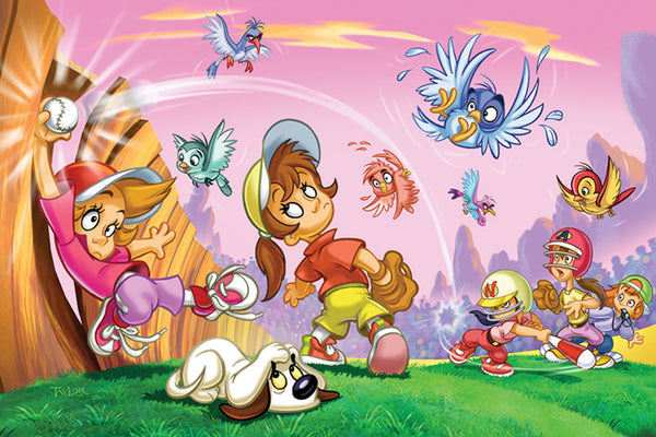 Allez les filles allez! Les rêves de softball de nombreuses jeunes filles prennent vie dans ce puzzle magnifiquement illustré.