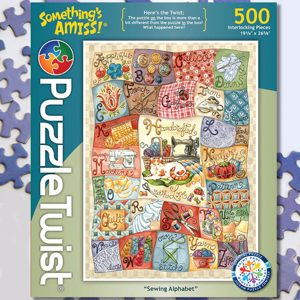 La torsion: le puzzle sur la boîte est plus que un peu différent du puzzle de la boîte!  Que s'est-il passé ici? L'alphabet de couture est un voyage entrelacé de...