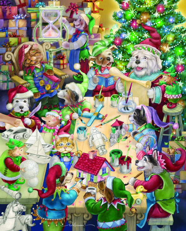 Une représentation amusante du Père Noël et des Elfes - comme animaux de compagnie! Les puzzles sur le thème des vacances sont parfaits pour passer le temps et construire l'anticipation pour Noël. Ils font également de grands cadeaux pour les enfants et les adultes! Tous nos énigmes de puzzle signature sont fabriquées aux États-Unis avec des matériaux recyclés. Les pièces entièrement imbriquées et formées au hasard constituent une expérience de construction de puzzle agréable. Chaque puzzle est produit sur une planche épaisse et de qualité parfaite pour le montage et le cadrage. Ce puzzle comprend 1000 pièces et mesure 24 "x 30" une fois terminé. Œuvres d'art de Randy Wollenmann.