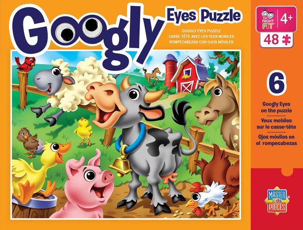 Puzzle amusant pour enfants avec divers animaux de ferme aux yeux écarquillés! Fonctionnalités de la nouvelle série "Googly Eyes" de Masterpiece, Inc.