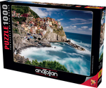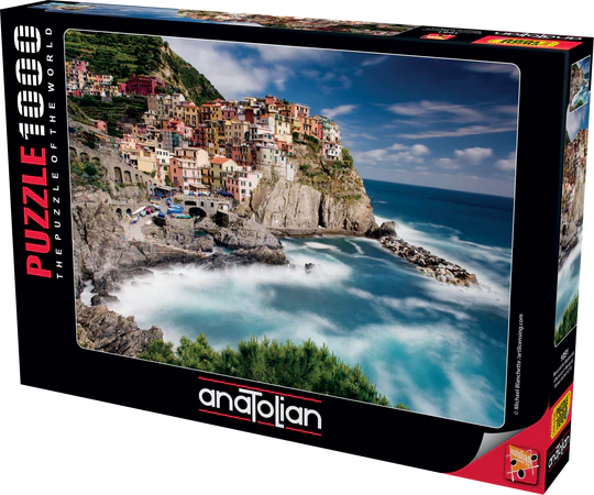 Les maisons colorées de la petite ville de Manarola, la deuxième plus petite des cinq villes composant la région côtière de Cinque Terre en Italie.Comprend un support de boîte pour...