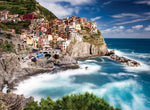Les maisons colorées de la petite ville de Manarola, la deuxième plus petite des cinq villes composant la région côtière de Cinque Terre en Italie.