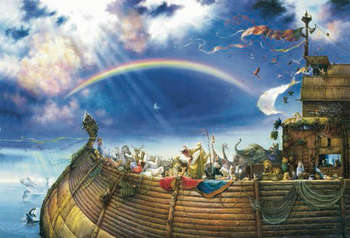 L'arche de Noah flotte sur la rivière prête pour le voyage