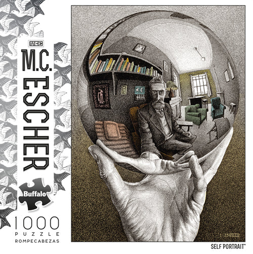 Ce puzzle de Maurits Cornelis Escher, l'un des graphistes les plus célèbres du monde, montre une image d'Escher reflétée dans une sphère brillante. Une affiche de puzzle bonus est également incluse