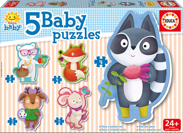 Cinq puzzles de forme différentes mettant en vedette de jolis bébés animaux.