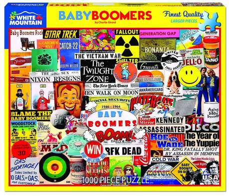 Catcher dans le Rye ou Catch-22, Fallout abri dans la zone crépusculaire, blâmez-le sur les baby-boomers! Ceux nés dans les années suivant la Seconde Guerre mondiale, entre 1946 et 1964, ont remis en question l'autorité, ont vu un changement social dramatique, expérimenté des tragédies nationales et peuvent compter trois présidents nés en 1946: # 42, # 43, & # 45. Ce collage vif par Charlie Girard affiche bon nombre des icônes de cette génération