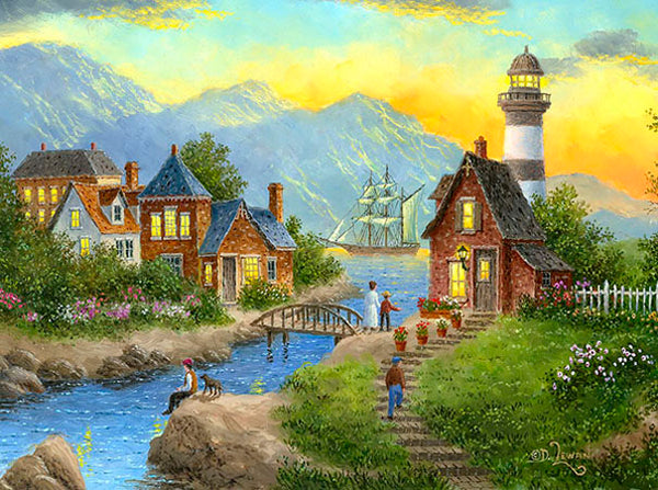Le soleil couchant laisse une rémanence sur cette ville côtière tranquille.