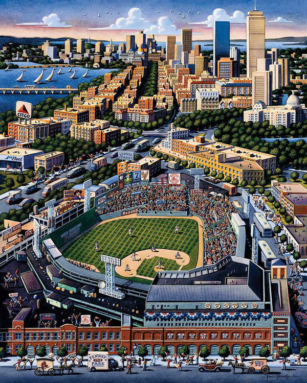 Racine pour les Red Sox de Boston au Fenway Park Stadium à la maison de l'équipe depuis son ouverture en 1912. Profitez du temps de qualité avec des proches qui construisent un puzzle d'art folklorique Dowdle. Voir le monde à travers les yeux de l'artiste folklorique Eric Dowdle. Du point de vue délicieux qu'il peint, il captive les gens de tous âges avec le charme d'esprit et les détails dans lesquels il dépeint une scène.