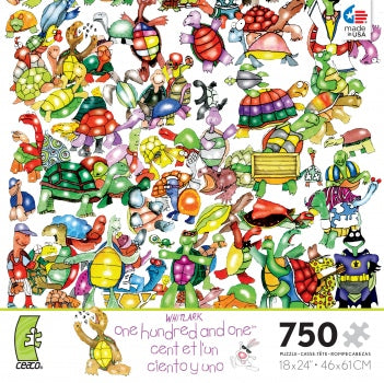 Cent tortues foulent la couverture de ce puzzle de Ceaco