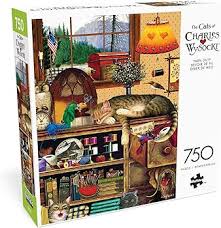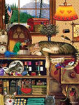 Ce puzzle de 750 pièces de Buffalo Games est de la collection Cats et est intitulé "" Duty Yarn "". Il présente l'art de Charles Wysocki, illustrant un adorable sieste...