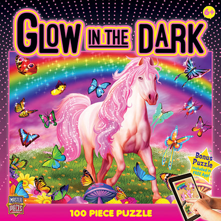 Ce puzzle de 100 pièces (lueur dans le noir) présente un cheval rose entouré de papillons. Puzzle bonus inclus dans l'application gratuite!