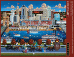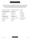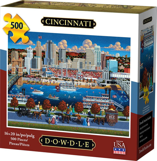Visitez le premier Boomtown de l'Amérique. Cincinnati a grandi rapidement en tant que centre de bateaux fluviaux et continue de célébrer ses riches racines de la rivière. Il a également une histoire sportive profonde en tant que domicile des Cincinnati Reds et des Bengals de Cincinnati. Cincinnati abrite également certaines des architectures les plus uniques et fascinantes d'Amérique. Venez Tour "The Queen of the West" avec cette image unique de l'artiste folk, Eric Dowdle.