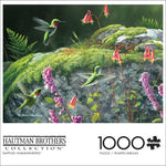 Dappled Hummingbirds est un puzzle de 1000 pièces de Buffalo Games et une partie de la collection Hautman Brothers. Profitez de reconstituer un rocher couvert de mousse lorsque des colibris...