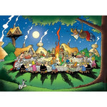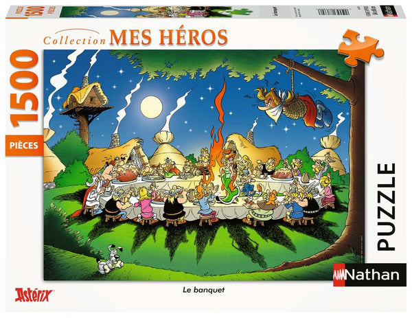 Asterix, Obélix et les Gaulois indompitables ont à nouveau épuisé les armées romaines occupantes et ont ramené une fête pour les villageois! C'est 50 avant notre ère et l'inspecteur général Overanxius ne peut pas garder la paire à l'intérieur de la clôture de palissade, qui s'échappe et voyage dans la Gaule pour ramasser des spécialités culinaires régionales pour le banquet. Bien sûr, ils reviennent et la fête commence avec du sanglier rôti, et peut-être un barde en sac pour démarrer! Un puzzle délicieux, surtout pour tout fan de la série de bandes dessinées!