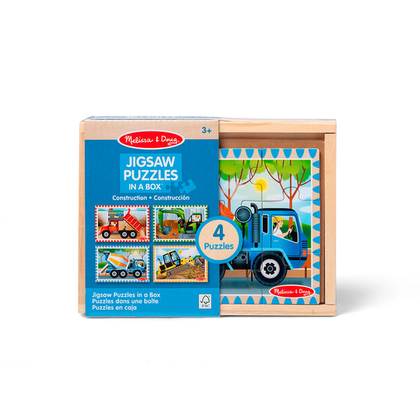 L'ensemble comprend quatre puzzles en bois en bois de construction de 12 pièces - un mélangeur en ciment, un bulldozer, un camion-benne et une excavatrice - chacun stocké dans un compartiment séparé d'une boîte en bois robuste! Le couvercle de la boîte à glissière se double d'une carte de puzzle pratique! Chaque pièce de puzzle est codée en forme à l'arrière pour un tri facile. Idéal pour les voyages! Ce produit est certifié par le Forest Stewardship Council. La certification FSC garantit que les produits proviennent de forêts gérées de manière responsable qui offrent des avantages environnementaux, sociaux et économiques, et que les forêts sont protégées pour les générations futures. Veuillez noter que la certification FSC s'applique uniquement au nouvel stock (FSC C156584)