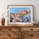 La vue de Santorin est imprégnée d'une lumière romantique, d'un pinceau impressionniste et d'une sensibilité aux couleurs. Cette image reflète parfaitement le paysage volcanique sauvage, les falaises accidentées et la belle architecture.