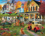 Sa chute à la ferme et tous les animaux profitent du dernier morceau de soleil avant de se coucher à l'horizon. Le cheval est sellé et prêt à sortir et à s'assurer que les animaux dans les pâturages sont bons pour la nuit tandis que quelques vaches paissent devant la grange. Les chiens attendent patiemment que leurs propriétaires reviennent et s'allongent sur la couverture tout en partageant ce qui est dans le panier de pique-nique. L'artiste David MacLean vous amène une retraite de country tranquille