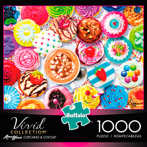 Ce puzzle de 1000 pièces de la collection Buffalo Games Vivid présente un assortiment de friandises alléchantes dans un arc-en-ciel de couleurs à choisir. Ce qui se passe mieux avec des cupcakes décorés colorés qu'une tasse de cacao chaud avec des guimauves! Amusez-vous à assembler les images brillantes et audacieuses qui vous donnent envie d'en prendre une bouchée. Cupcakes & Cocoa est basé sur les œuvres d'art d'Aimee Stewart qui est une artiste autodidacte spécialisée dans la peinture numérique électrique luxuriante et la manipulation de photos. Inspiré par la musique et la littérature, Stewart travaille du cœur pour donner vie à ses visions uniques. Chaque puzzle de puzzle de Buffalo Games est fabriqué aux États-Unis auprès de Recycled Puzzle Board. Une technique de coupe de précision garantit que chaque pièce s'adaptera profondément à la signature Perfect Snap ™ de l'entreprise. Une affiche de puzzle bonus est également incluse afin que vous ayez une référence pratique de ce à quoi le puzzle terminé devrait ressembler pendant que vous assembez le vôtre.
