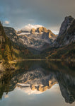 L'une des plus grandes montagnes d'Autriche, le pic du Dachstein de 3000 mètres de haut se reflète dans les eaux du lac Gosau bien en dessous.
