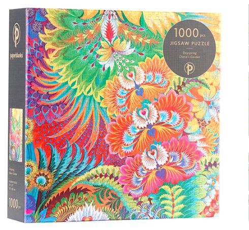 Olena Skytssiuk est l'un des principaux praticiens de la peinture ukrainienne «Petrykivka», un style né au 17ème siècle. À l'origine, ces peintures ont été utilisées pour décorer des objets ménagers et ont été affichés sur un fond blanc. Les artistes de Petrykivka d'aujourd'hui travaillent sur des arrière-plans colorés, comme on le voit sur notre design Dayspring.