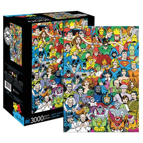 Héros, méchants et tous ceux qui entrent entre les deux se rassemblent dans ce puzzle de 3000 pièces coloré. Illustré dans leur style classique, ce puzzle est rempli aux limites...
