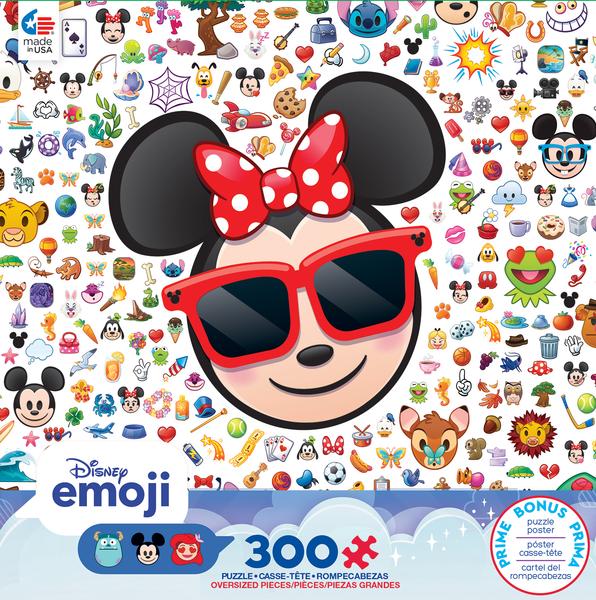 Ce puzzle de 300 pièces surdimensionné présente une image de plusieurs emojis des amis Disney.