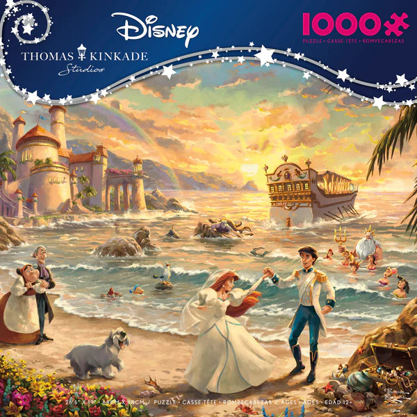 Ce puzzle de 1000 pièces Disney Thomas Kinkade, intitulé "The Little Mermaid: Celebration of Love", dépeint Ariel et le monde du prince Eric se réunissant lors de leur mariage en...
