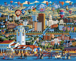 En tant que plus grande ville de l'Idaho, Boise est à la fois urbaine et en plein air, sauvage et relaxante, amical et inoubliable. Connu sous le nom de "City of Trees" Boise se démarque dans son environnement du désert parce que la rivière Boise coule à travers elle. Viens avec Eric Dowdle alors qu'il mélange vieux et nouveau dans cette peinture. Explorez la gare, faites flotter la rivière et profitez d'un festival de montgolfière dans cette ville unique.