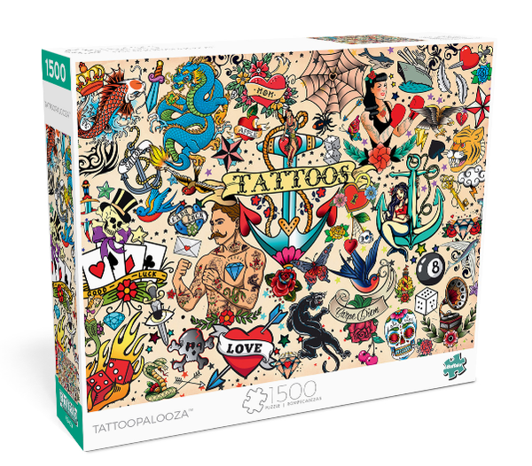 Cette boîte est endommagée Ce fantastique puzzle à 1500 pièces, Tattoopalooza est de la série Art of Play par Buffalo Games. Ce puzzle présente certains des designs de tatouage les...