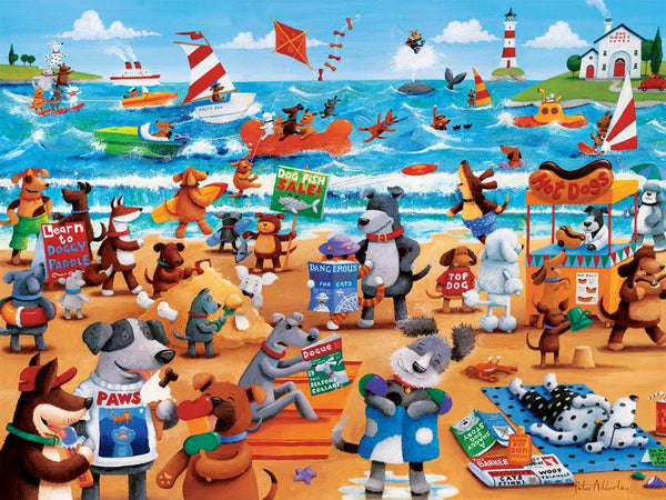 Ce puzzle de Ceaco présente des chiens sur la plage