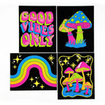 • 🌈 Set includes 4 unique neon designs: mushrooms rainbows and groovy lettering