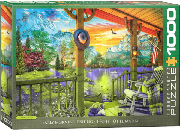 This serene puzzle depicts a peaceful scene of a fisherman casting his line into a calm lake. The sun is just beginning to rise, and the sky is ablaze with...