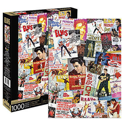 Elvis, ayant conquis le monde musical, souhaitait également devenir une star de cinéma. Ce puzzle de 1000 pièces présente des affiches de films du roi dans ses rôles à l'écran.