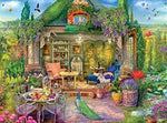 Ce puzzle de 1500 pièces, Wine Country Escape, est basé sur l'œuvre d'Aimee Stewart. Détendez-vous dans la petite escapade parfaite nichée dans les collines du pays viticole. Il y a des vins à goûter, des amuse-gueules à manger et de beaux paysages à prendre. Les fleurs entourent un chalet mignon et confortable tandis que les oiseaux volent au-dessus.