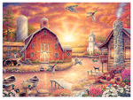 Ce joli puzzle de 1 000 pièces, la ferme de gouttes de miel, montre le coucher du soleil sur la ferme locale et la cabane en rondins de la famille à travers le lac. Vous apprécierez de rassembler ce paysage pittoresque de la nature et de ceux qui l'habitent. Ce puzzle est de Buffalo Games basé sur l'œuvre d'art par le talentueux Chuck Pinson.
