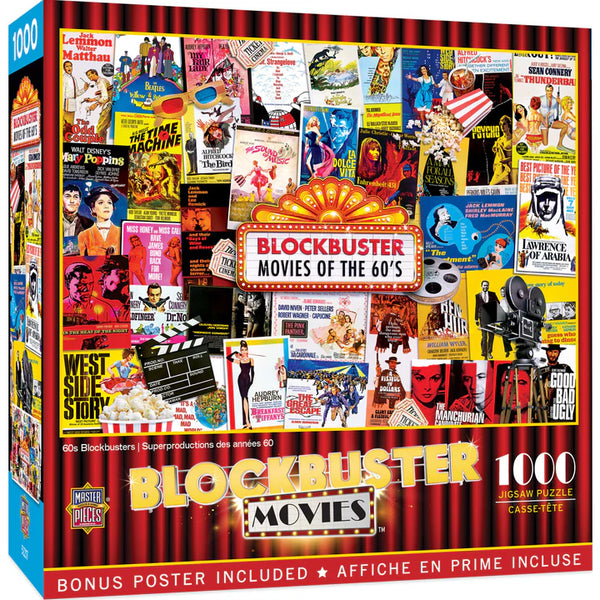 Rechetez la bande avec ce collage nostalgique de films à succès des années 1960! Revisitez des classiques comme le petit-déjeuner chez Tiffany, Lawrence of Arabie, The Pink Panther et The Odd Couple. Revivez le suspense du psycho d'Alfred Hitchcock et des oiseaux. Chantez avec Julie Andrews dans le son de la musique ou Mary Poppins. Prenez un seau de pop-corn et profitez des heures de divertissement de qualité hollywoodienne!