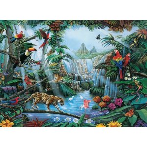 Ce puzzle de Clementoni présente un dessin animé coloré de la jungle.