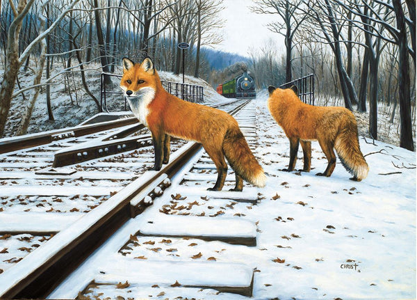 Les renards sur les voies ferrées pendant l'hiver.