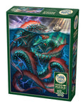 The ocean is vast and able to conceal gargantuan secrets like this electrifying sea serpent. Turquoise coils sport the bioluminescence found on deep sea creatures and illuminate the murky depths where you can just spot the future that awaits the ship above. UK-based artist Emily Megan has a focus on creature design and works in both 2 and 3D. From the Depths is a fantastical 1000 piece puzzle for lovers of mystery, the sea, and its mythical creatures.