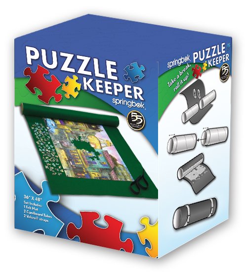 Le gardien de puzzle en feutre de Springbok est une excellente surface pour assembler et stocker votre puzzle. Le feutre luxuriant permet de ramasser des pièces facilement et les sangles...