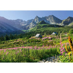L'impression du caractère de conte de fées du paysage et de l'immensité des montagnes est améliorée par les collines douces et les grandes prairies éclairées par le soleil du matin....