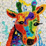 Girafe arc-en-ciel par l'artiste Dylan R. Dylan est un artiste jeune et énergique autistique. Il montre ses talents créatifs de dessin, de peinture et d'argile. Quand il a un pinceau...