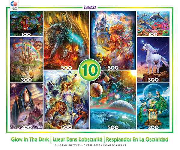 Profitez de cette lueur 10 en 1 dans le multi-pack sombre. Il présente un dragon, une licorne, un sorcier et plus encore.