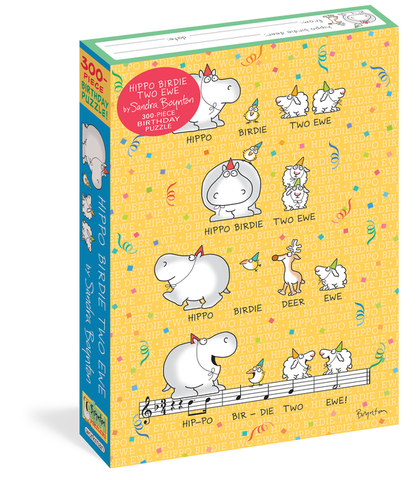 La célèbre carte d'anniversaire de Boynton (avec plus de 10 millions d'exemplaires vendues, jusqu'à présent!) Est maintenant sous forme de puzzle. Commencez une nouvelle tradition familiale en la présentant à chaque anniversaire, et lorsque toutes les pièces sont en place, tout le monde peut chanter avec cœur: Hippo Birdie Two Ewe, Hippo Birdie Two Ewe! C’est le cadeau qui continue de donner!